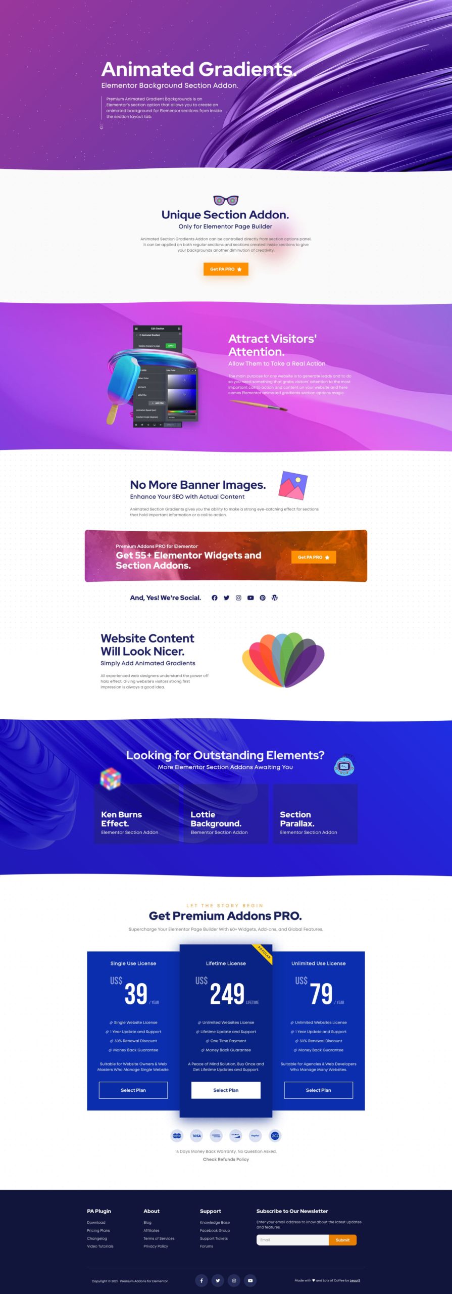 Add Animated Gradient colors to your Elementor sections using Premium Animated Gradients Background Section Add-on.